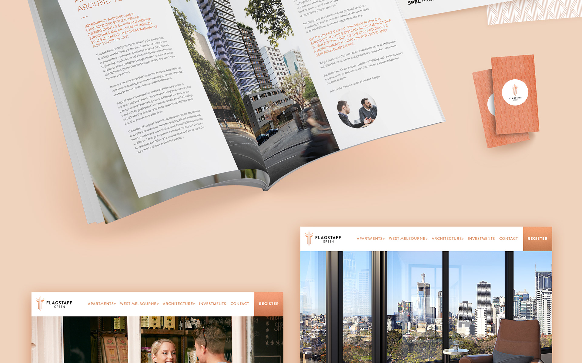 Branding, brochure, printed collateral, microsite and full website for a Spec Property apartment development.