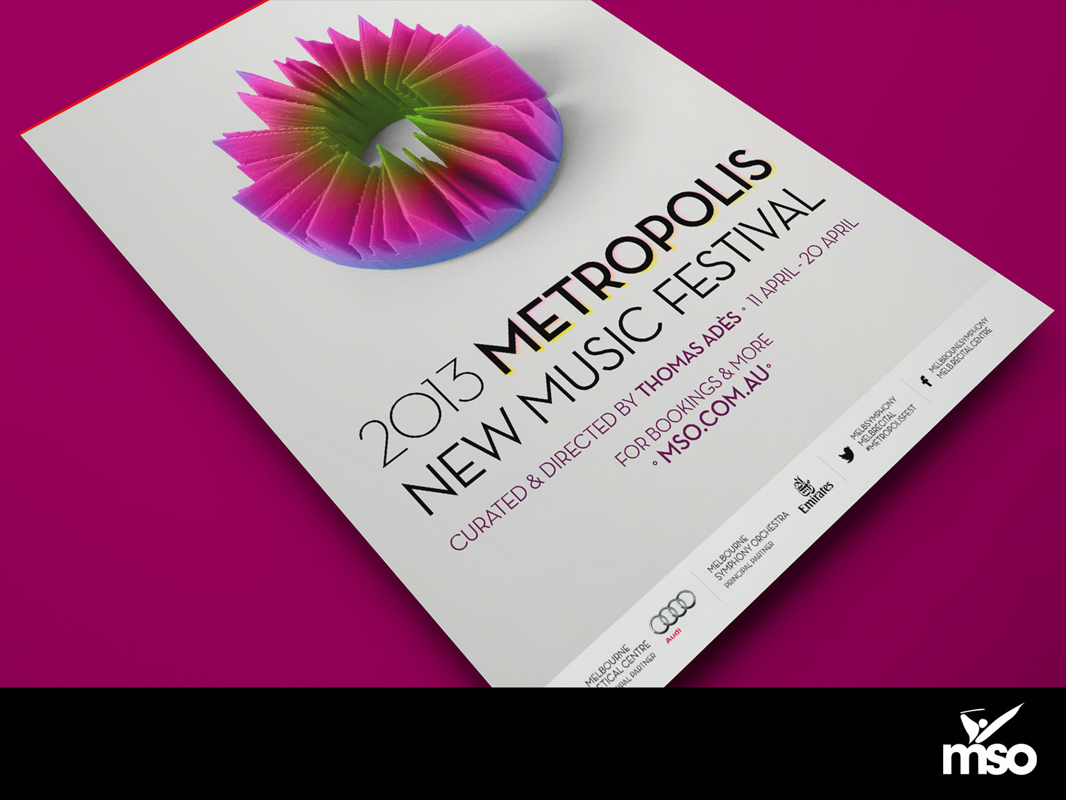 Poster design for the Metropolis New Music Festival. Responsible for art direction and graphic design.
