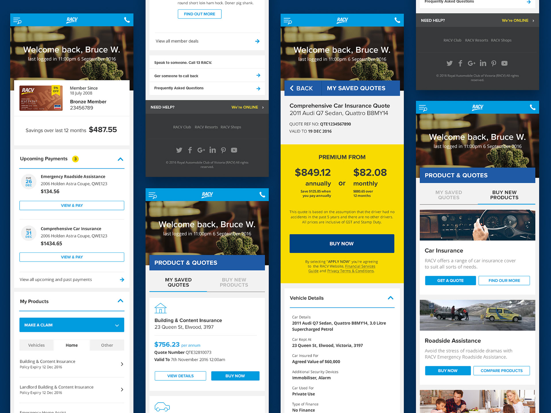 UX and UI for RACV online member portal. Allowing members to manage their RACV products, offers and subscriptions.