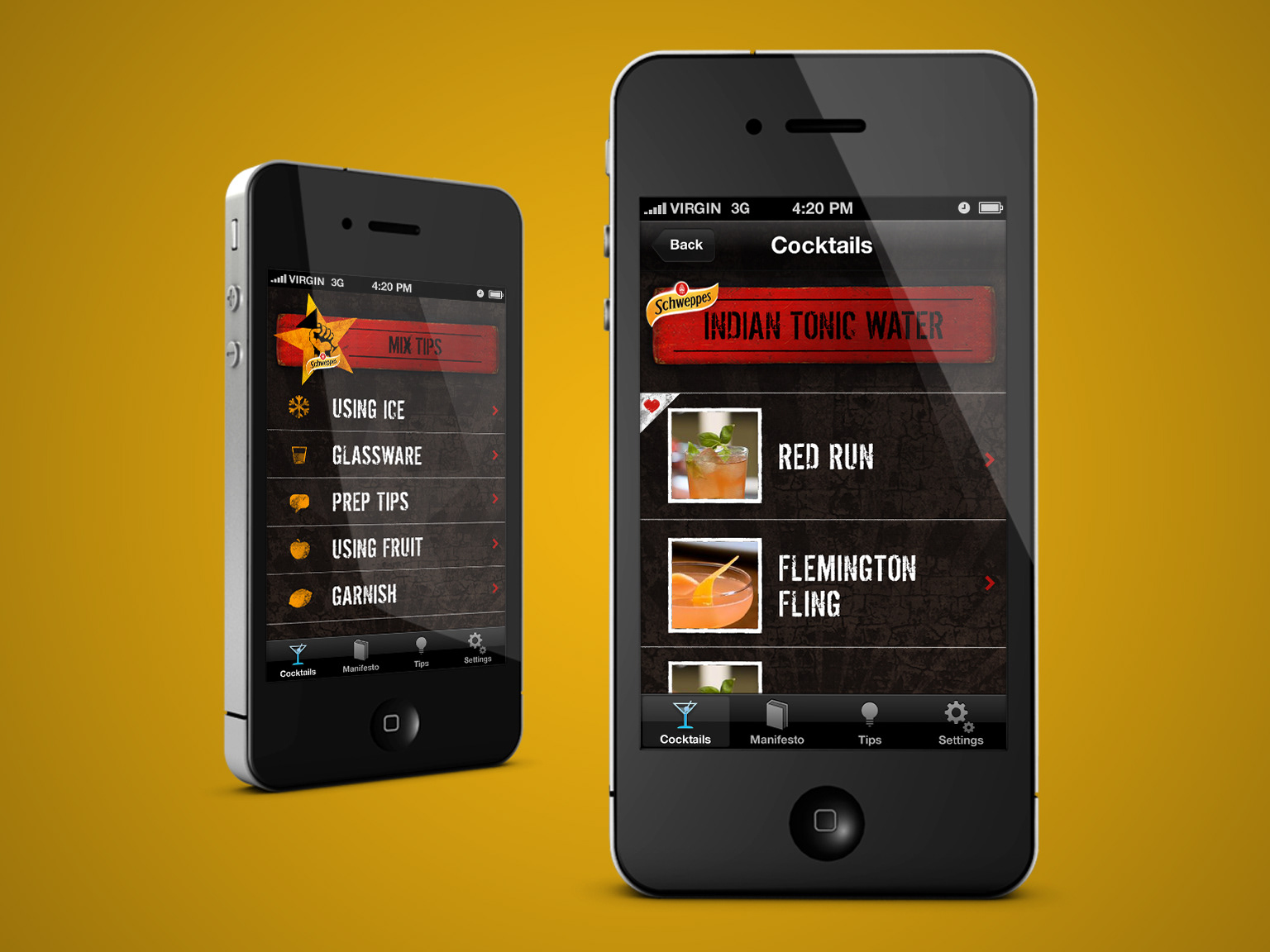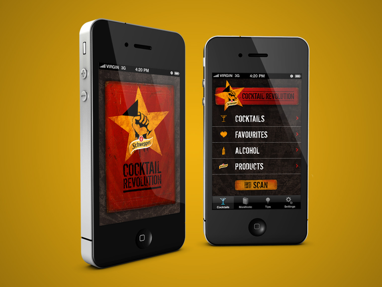 App design for Schweppes Cocktail Revolution campaign. Art Direction and design for Schweppes Bar Show experiential AR campaign.